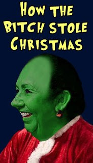 <div class="separator" style="clear: both; text-align: center;"><a href="http://4.bp.blogspot.com/-RCWggeSUxdk/TvvrQBaC7DI/AAAAAAAAAlQ/gEI2FaRjm4k/s1600/375302_238736926199690_100001901541307_583203_417953169_n.jpg" imageanchor="1" style="margin-left: 1em; margin-right: 1em;"><img border="0" height="320" src="http://4.bp.blogspot.com/-RCWggeSUxdk/TvvrQBaC7DI/AAAAAAAAAlQ/gEI2FaRjm4k/s320/375302_238736926199690_100001901541307_583203_417953169_n.jpg" width="182" /></a></div>Every Brown<br />Down in Brownsville<br />Liked TSC-College a lot...<br /><br />But the Bitch,<br />Who lived in Rio Viejo,<br />Did NOT!<br /><br />The Bitch hated Brownsville! The whole TSC Mission!<br />Now, please don't ask why. No one quite knows the reason.<br />It could be her birth made her brown and not white.<br />It could be, perhaps, she got beat with a shoe every night.<br />But I think that the most likely reason of all<br />May have been that her heart was two sizes too small.<br /><br />But,<br />Whatever the reason,<br />Her birth or the shoes,<br />She plotted and planned and continued to schmooze <br />Staring down from her cave with a sour, Bitchy frown<br />At the warm lighted windows below in their town.<br />For she knew every Brown down in Brownsville beneath<br />Was busy now, hanging a Juliet effigy wreath.<br /><br />"And they're casting their ballots!" she snarled with a sneer.<br />"Tomorrowâ™s TSC-College! It's practically here!"<br />Then she growled, with her Bitch fingers nervously drumming,<br />"I MUST find a way to keep TSC-College from coming!"<br />For, tomorrow, she knew...<br /><br />...All the Brown girls and boys<br />Would wake up bright and early. Theyâ™d vote out her boys!<br />And then! Oh, the Choice ! Oh, the choice! Choice! Choice! Choice!<br />That's one thing she hated! The CHOICE! CHOICE! CHOICE! CHOICE!<br /><br />Then the Browns, young and old, would demand fees be decreased.<br />And they'd feast! And they'd feast!<br />And they'd FEAST! FEAST! FEAST! FEAST!<br />They would start questioning costs, and how they'd been fleeced<br />Which was something the Bitch couldn't stand in the least!<br /><br />And THEN<br />They'd do something she liked least of all!<br />Every Brown down in Brownsville, the tall and the small,<br />Would stand close together, with College bells ringing.<br />They'd have TSC-itis. And the Browns would start singing!<br /><br />They'd sing! And they'd sing!<br />AND they'd SING! SING! SING! SING!<br />And the more the Bitch thought of the Junior-College-Sing<br />The more the Bitch thought, "I must stop their TSC thing!<br />"Why for nineteen odd years I've put up with it now!<br />I MUST stop TSC College from coming!<br />...But HOW?"<br /><br />Then she got an idea!<br />An awful idea!<br />THE BITCH<br />GOT A WONDERFUL, AWFUL IDEA!<br /><br />"I know just what to do!" The Bitch Laughed in her throat.<br />And she made a quick Santy Claus hat and a coat.<br />And she chuckled, and clucked, "What a great Bitchy trick!<br />"With her coat and her hat, I'll look just like Saint Nick!"<br /><br />"All I need is a fall guy..."<br />The Bitch looked around.<br />But since fall guys are scarce, there was none to be found.<br />Did that stop the old Bitch...?<br />No! The Bitch simply said,<br />"If I can't find a fall guy, I'll make one instead!"<br />So she called her dog Alan. Then she took some red thread<br />And she tied a big title on top of his head.<br /><br />THEN<br />She acquired a plan<br />And some old empty sacks<br />On a ramshackle sleigh<br />And she hitched up her hacks.<br /><br />Then the Bitch said, "Giddyap!"<br />And the sleigh started down<br />Toward the homes where the Browns<br />Lay a-snooze in their town.<br /><br />All their windows were dark. Quiet snow filled the air.<br />All the Browns were all dreaming sweet dreams without care<br />When she came to the first house in the square.<br />"There is stop number one," The old Bitchy Claus hissed<br />And she climbed to the roof, evil plan in her fist.<br /><br />Then she slid down the chimney. A rather tight pinch.<br />But if Santa could do it, then so could the Bitch.<br />She got stuck only once, for a moment or two.<br />Then she stuck her head out of the fireplace flue<br />Where the in-district tuition all hung in a row.<br />"In-district tuition," she grinned, "is the first thing to go!"<br /><br />Then she slithered and slunk, with a smile most unpleasant,<br />Around the Board room, and she took every present!<br />Parking Lots! And Buildings! Professorships! Graduate gowns!<br />Libraries! Snack Bars! Book Stores! And Lawns!<br />And she stuffed them in bags. Then the Bitch, very nimbly,<br />Stuffed all the bags, one by one, up the chimney!<br /><br />Then she slunk to the tax rolls. She took the Browns' feast!<br />She increased the tax rate! She took the tamale-roast beast!<br />She cleaned out those tax rolls as quick as a flash.<br />Why, that Bitch even took thousands for a self-serving bash!<br /><br />Then she stuffed all the money up the chimney with glee.<br />"And NOW!" grinned the Bitch, "Iâ™ll discredit trustees!"<br /><br />And the Bitch blamed trustees, and she started to shove<br />When she heard a small sound like the coo of a dove.<br />She turned around fast, trouble stared to brew!<br />Little Adela whose years on the board had been few.<br /><br />The Bitch had been caught by their little Brown daughter<br />Who'd got out of bed for a cup of cold water.<br />She stared at the Bitch and said, "Santy Claus, why,<br />"Why are you breaking our Partnership ? WHY?"<br /><br />But, you know, that old Bitch was so smart and so slick<br />She thought up a lie, and she thought it up quick!<br />"Why, my sweet little tot," the fake Santy Claus lied,<br />"There's a trustee or two that wonâ™t vote on my side.<br />"So I'm taking it home to the Regents, my dear.<br />"I'll fix it up there. Then I'll bring it back here."<br /><br />And her 